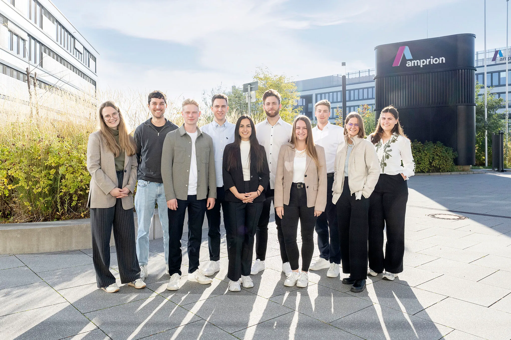 Ein Team von Amprion-Mitarbeitern bespricht in einem modernen Büro Konzepte der Energieversorgung.